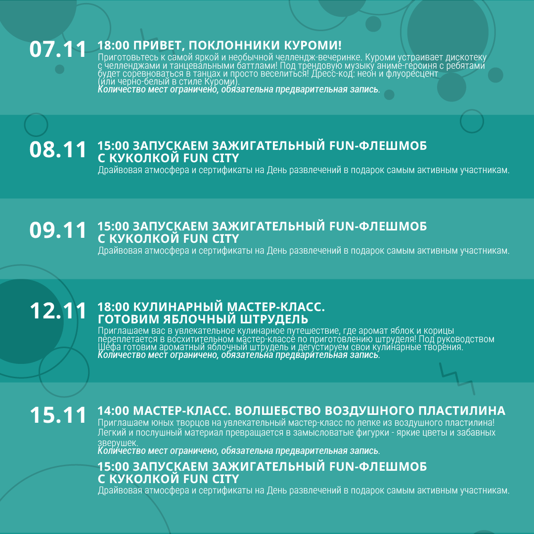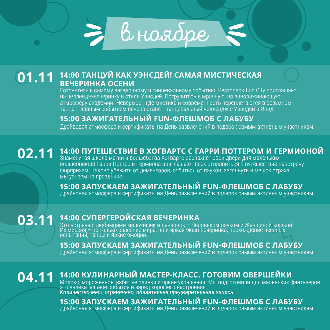 *Участие в мероприятиях бесплатное, необходим только входной билет в парк. На отдельные мероприятия необходима предварительная запись: