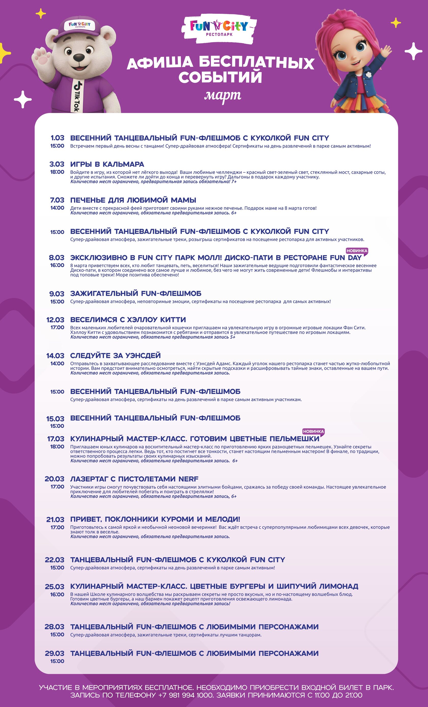 *Участие в мероприятиях бесплатное, необходим только входной билет в парк. На отдельные мероприятия необходима предварительная запись: